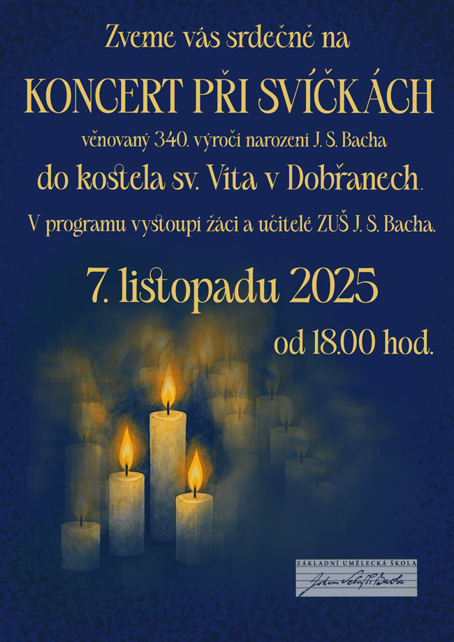 Rádi bychom Vás pozvali na koncert při svíčkách, který se uskuteční v pátek 7. listopadu 2025 od 18.00 hodin v kostele sv. Víta v Dobřanech.